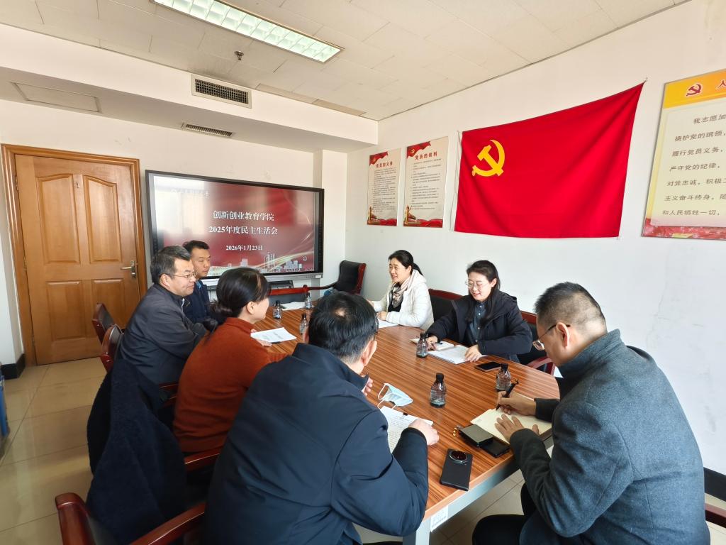 1月23日,创新创业教育学院召开2025年度民主生活会。党委宣传部副部长张艳霞与会指导,学院领导班子成员参加会议,非中共党员的领导班子成员列席会议。会议由院党委书记王海波主持。