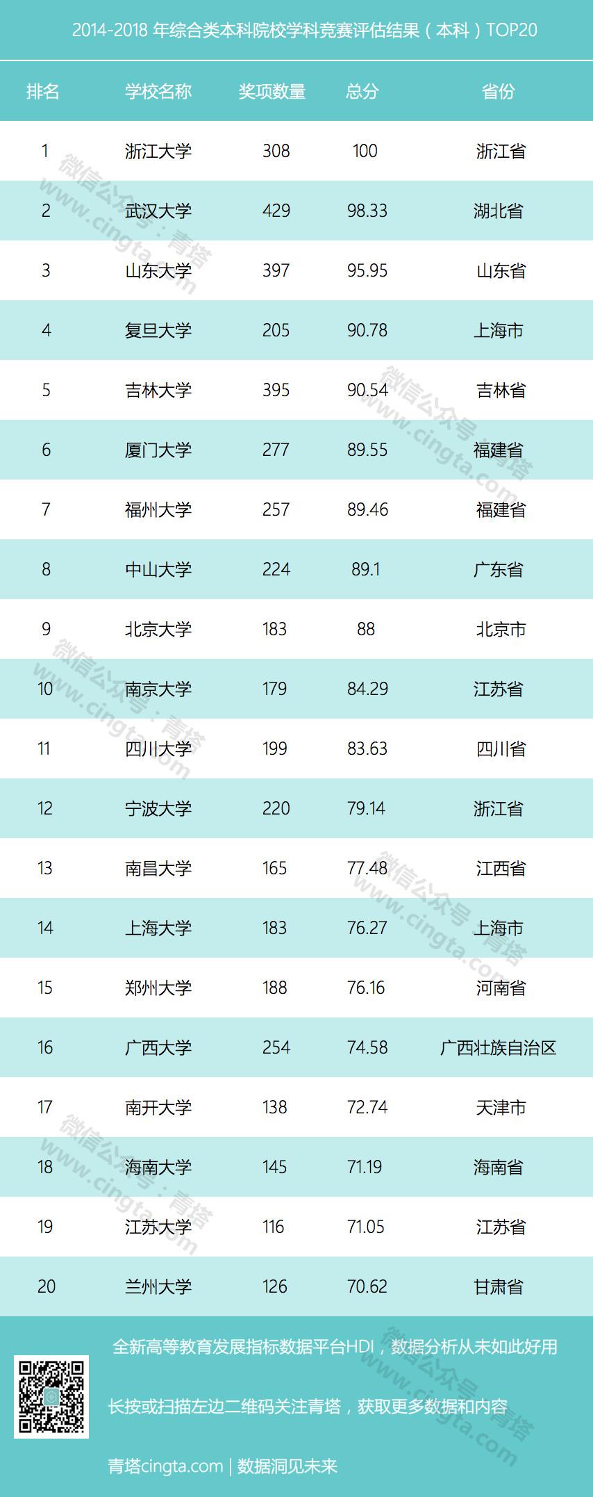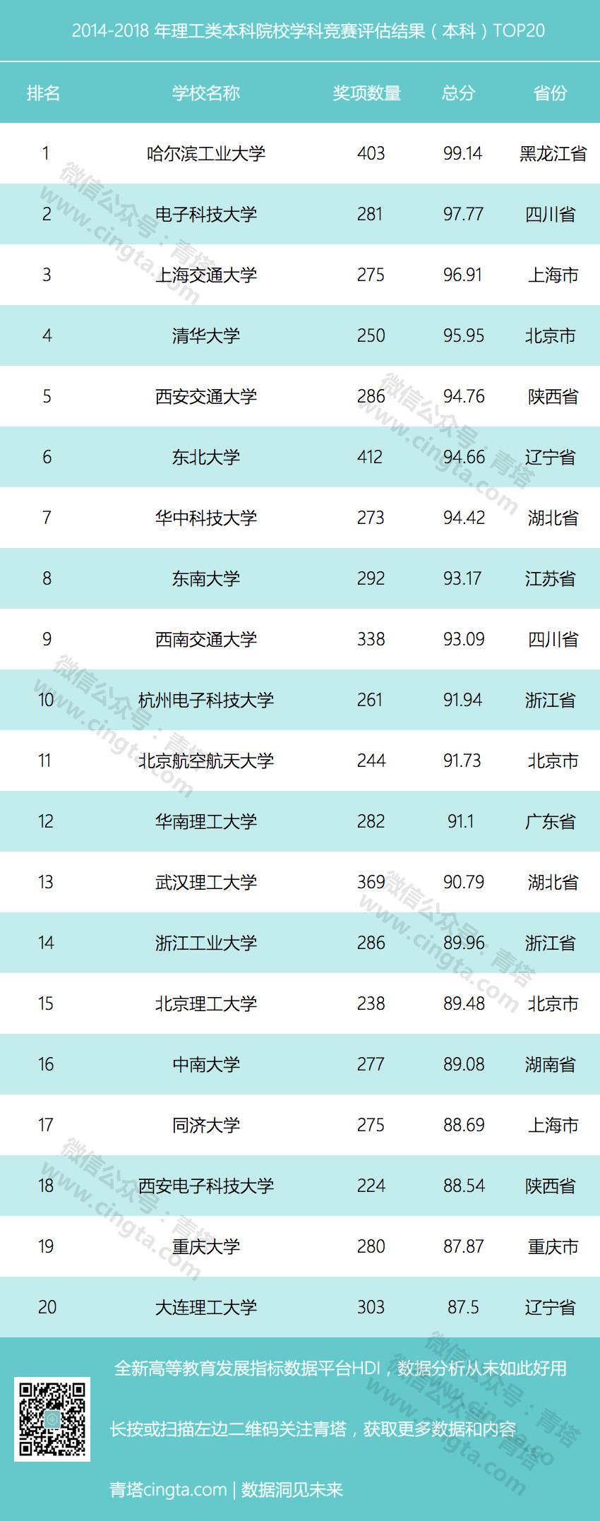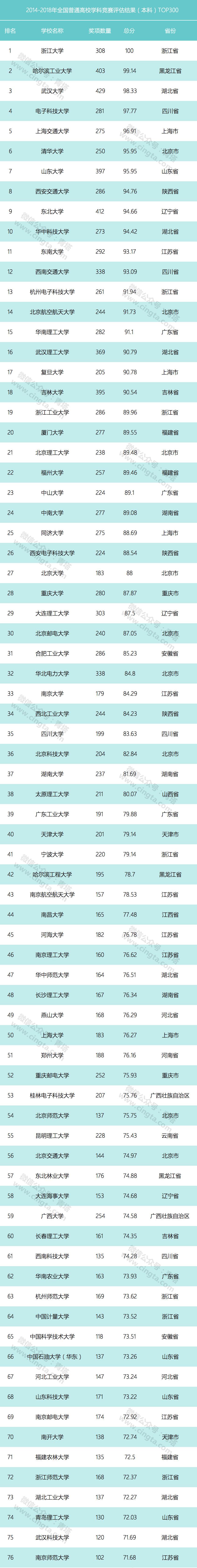 重磅:2014-2018年全国普通高校学科竞赛评估结果出炉!