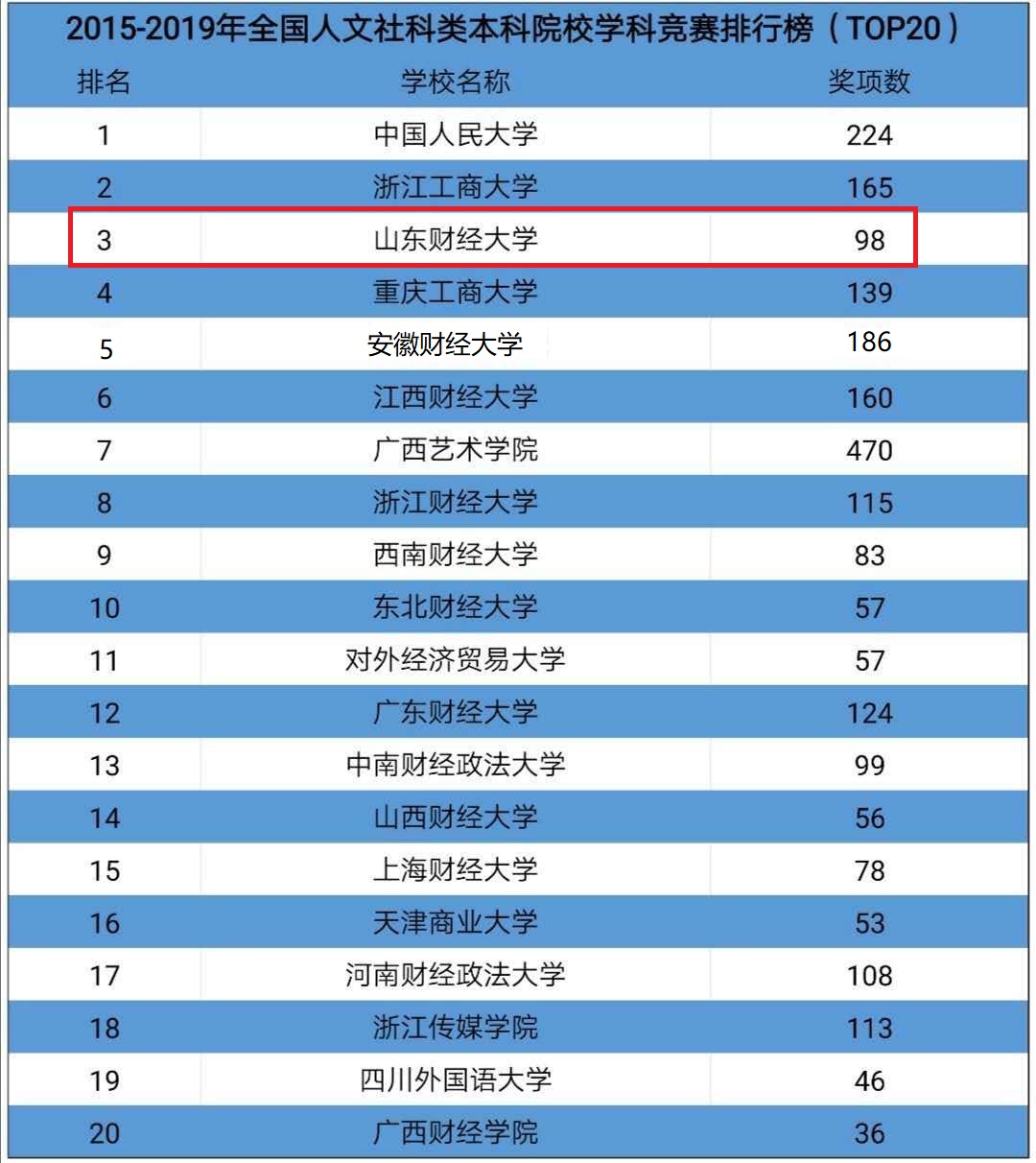 【大众网】山东财经大学位列2019年全国高校学科竞赛排行榜人文社科类高校第三位